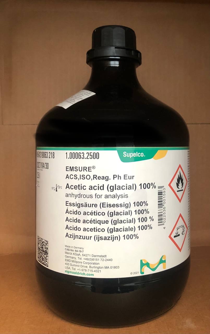 «اسید استیک منجمد» یا اسیداستیک گلاسیال یک نام سطحی برای اسید استیک بدون آب است.