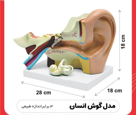 مولاژ گوش در ابعادی سه برابر اندازه طبیعی ساخته شده و اجزای داخلی ,میانی و خارجی گوش را به دقت میتوان داخل مولاژ مشاهده کرد. این مولاژ در بخش های مختلف دارای قسمت های زیر میباشد.